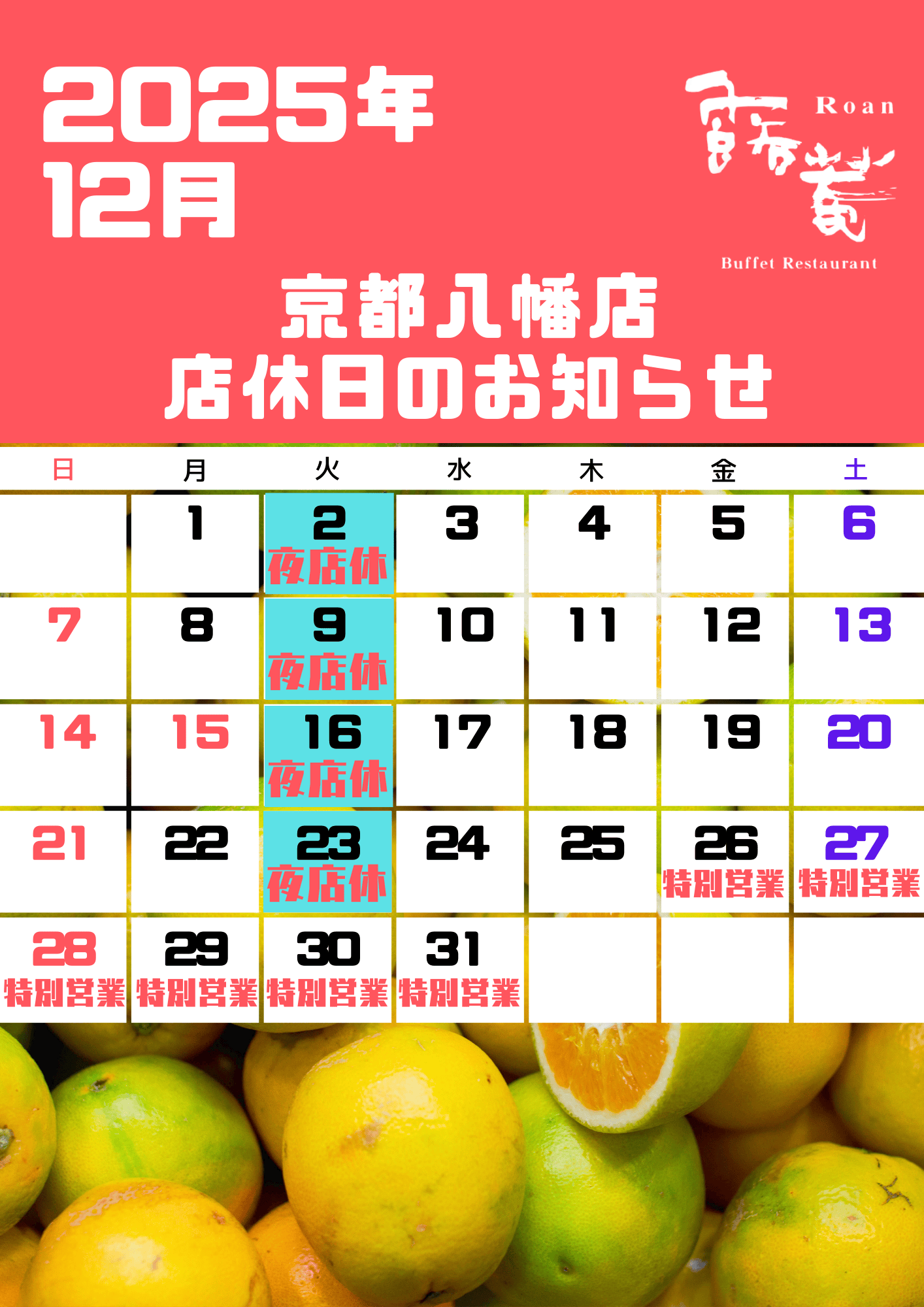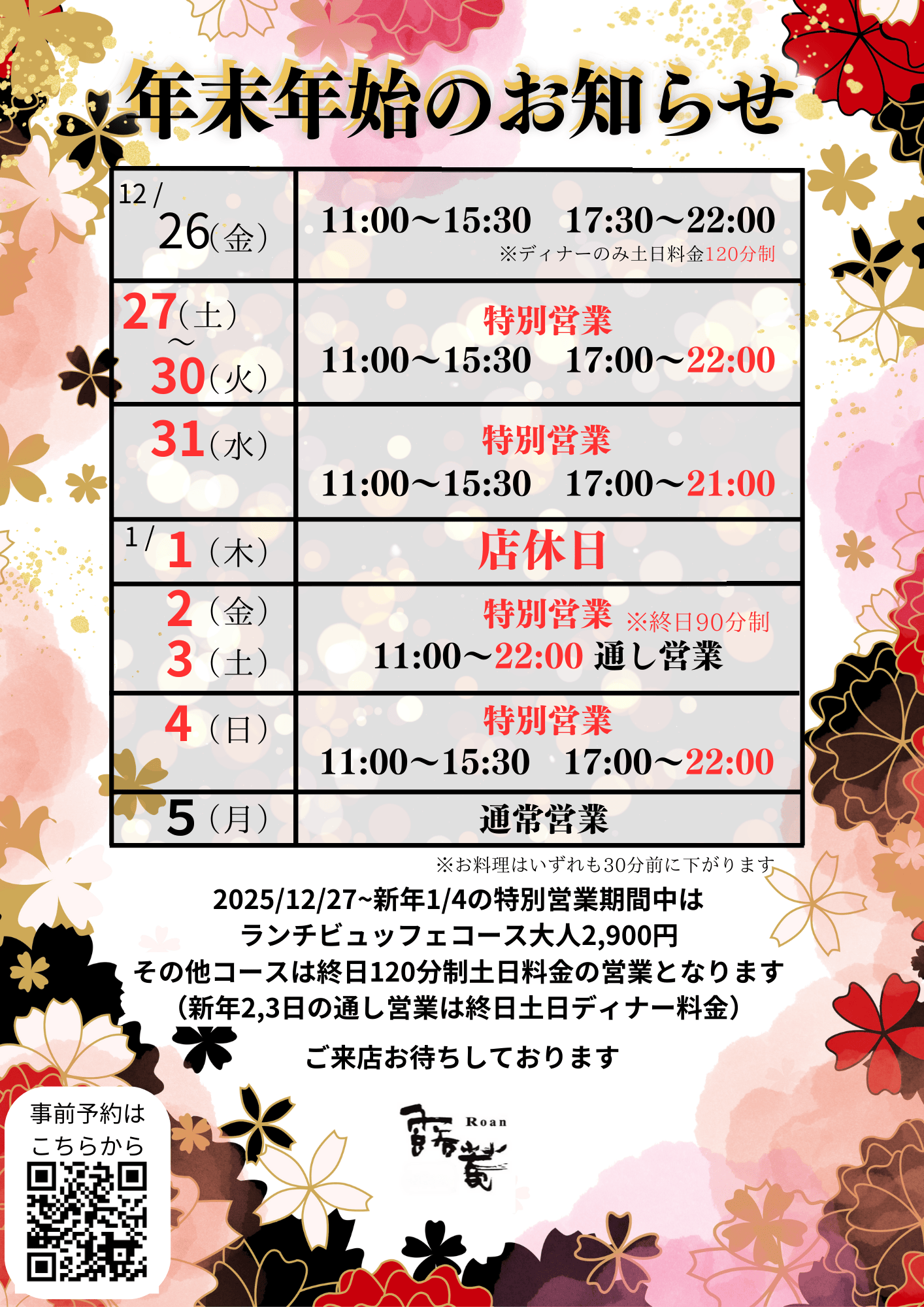 ※別途店休日のお知らせをご確認ください |